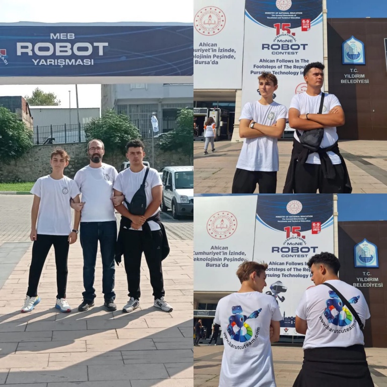 Okulumuzun bilişim takımı olan "Barutçu Team" Bursa'da düzenlenen MEB Robot yarışmasına okulumuzun öğrencileri Hızır Efe Erol, Ozan Şeran ve okulumuzun müdür yardımcısı Hasan Kemikli ile katıldı.